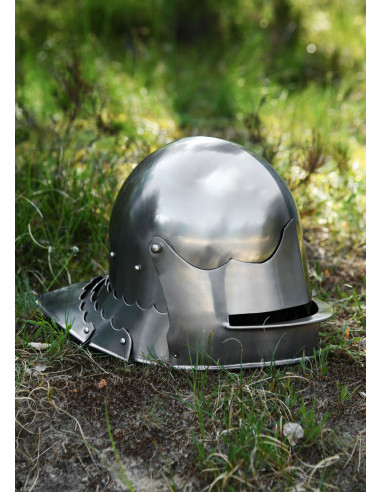 Stai cercando un autentico bacinetto medievale per completare la tua armatura? Non cercare oltre, perché abbiamo il casco perfetto per te. Ti presentiamo la bacinella medievale Houndskull, ispirata al castello di Churburg dell'anno 1395. Questo elmo è realizzato in acciaio spesso 1,8 mm, che lo rende un'opzione resistente e duratura.