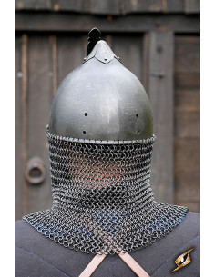 Immagina di indossare facilmente questo casco sulla testa, sentendo come il suo morbido ma stabile imbottitura ti fa dimenticare di averlo addosso. Ogni movimento, ogni combattimento o gioco, diventa un'estensione del tuo carattere, grazie al suo adattamento personalizzabile. La cotta di maglia di 1 mm di spessore, più che una protezione, è un simbolo di resistenza che ti accompagna in ogni sfida, in ogni scenario di ricostruzione. La finitura in acciaio lucido e il colore epico scuro rendono la tua presenza imponente, senza bisogno di parole, solo sguardi che riconoscono la tua dedizione e stile.