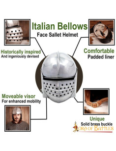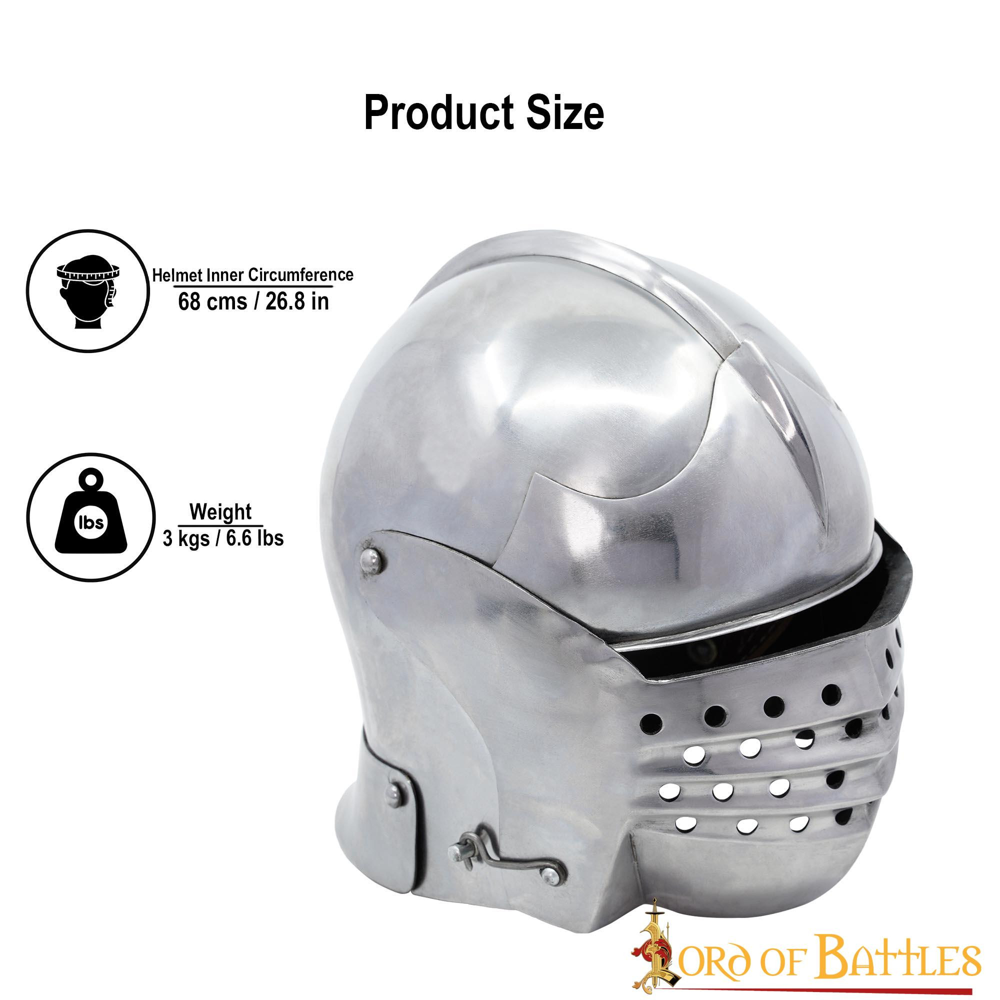 Elmo Sallet medieval in acciaio lucido, modello Franz