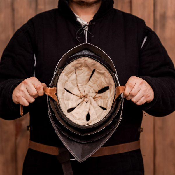 Elmo medievale German Sallet, con fodera imbottita