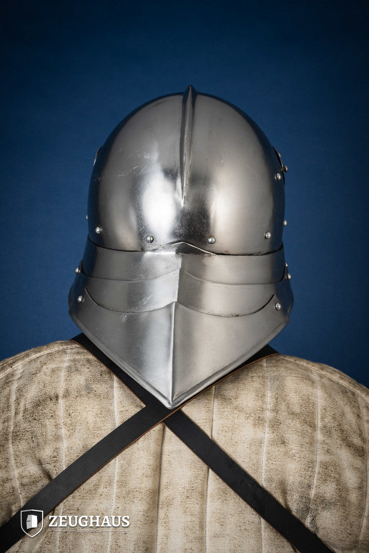 Richiesta su Elmo celata tedesco del XV secolo, acciaio lucido (1,6 mm.)
