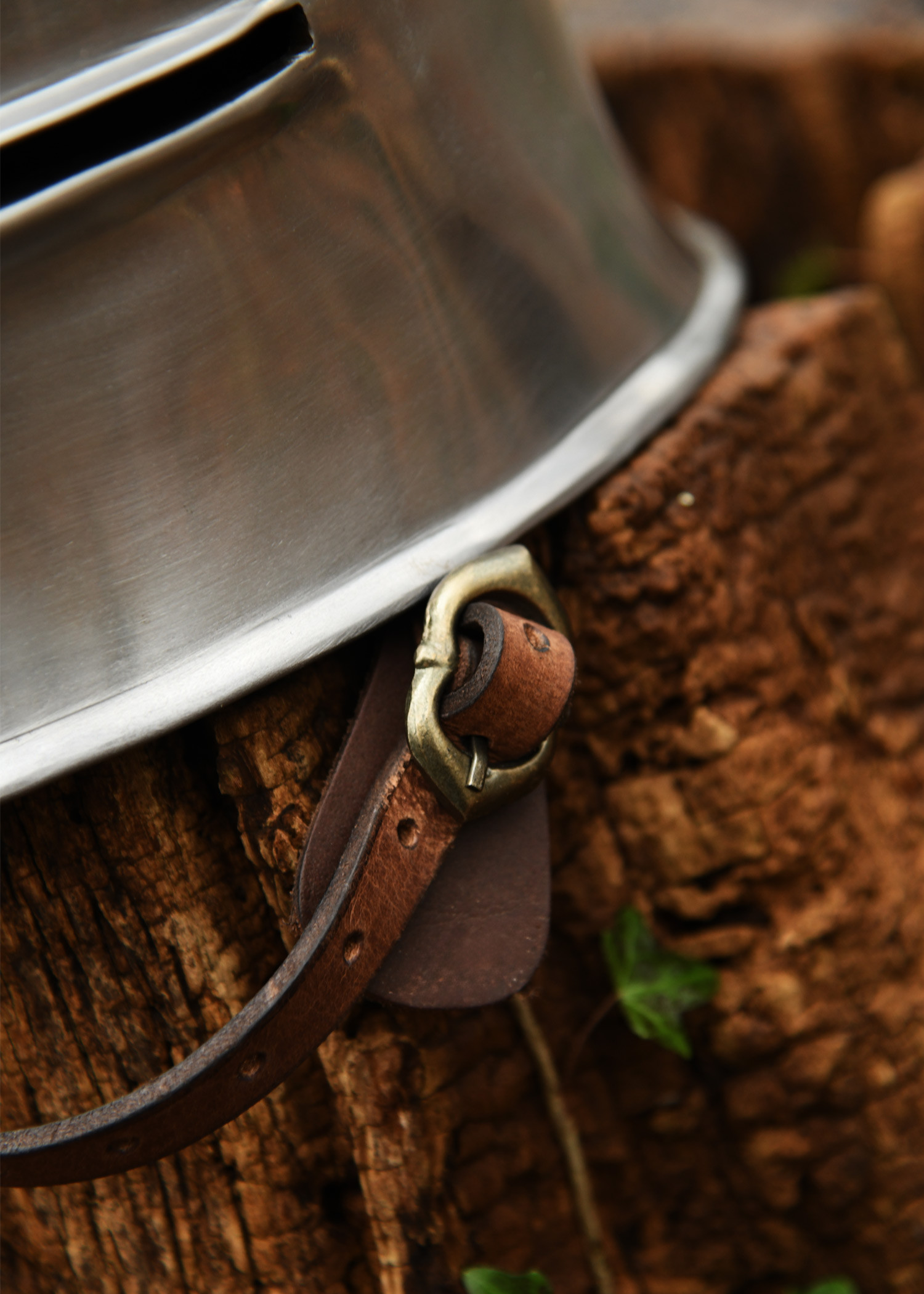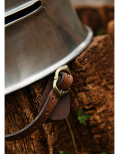 Elmo Sallet medieval in acciaio lucido, modello Franz