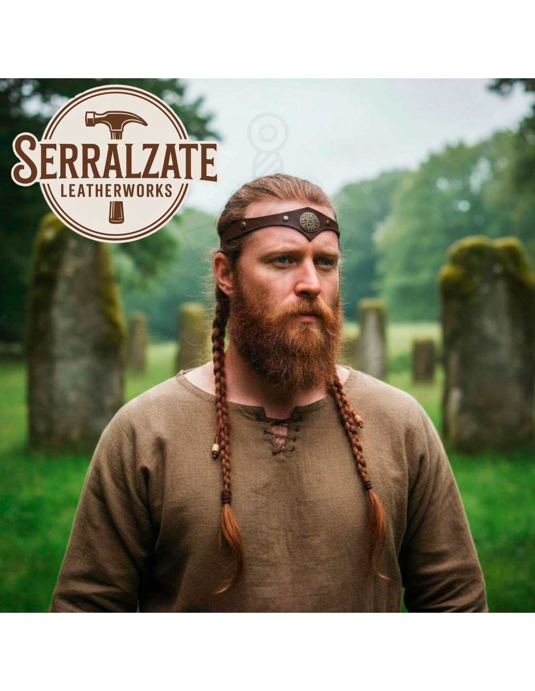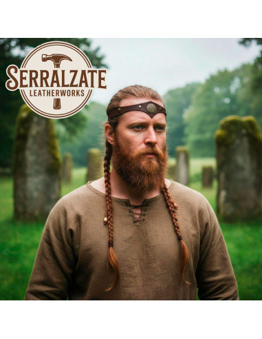 Il suo design protegge la fronte con quell'eleganza delicata che conferisce il decoro metallico con motivi celtici e borchie, evidenziando dettagli che riflettono la storia e la tradizione, ideali per chi ama accessori con carattere e spirito. La regolabilità nella parte posteriore, tramite un cordoncino in pelle, garantisce un comfort perfetto e una vestibilità personalizzata, facilitando l'uso in diverse occasioni.