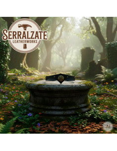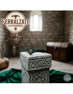 Il suo design protegge la fronte con quell'eleganza delicata che conferisce il decoro metallico con motivi celtici e borchie, evidenziando dettagli che riflettono la storia e la tradizione, ideali per chi ama accessori con carattere e spirito. La regolabilità nella parte posteriore, tramite un cordoncino in pelle, garantisce un comfort perfetto e una vestibilità personalizzata, facilitando il suo utilizzo in diverse occasioni.