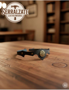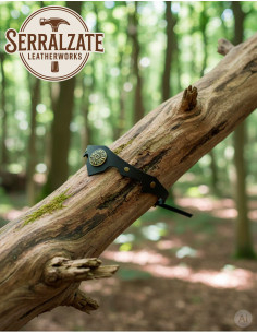 Il suo design protegge la fronte con quell'eleganza delicata che conferisce il ornamento metallico con motivi celtici e rivetti, evidenziando dettagli che riflettono la storia e la tradizione, ideali per chi ama accessori con carattere e spirito. La regolabilità nella parte posteriore, tramite un cordoncino in pelle, garantisce un comfort perfetto e una vestibilità personalizzata, facilitando il suo utilizzo in diverse occasioni.