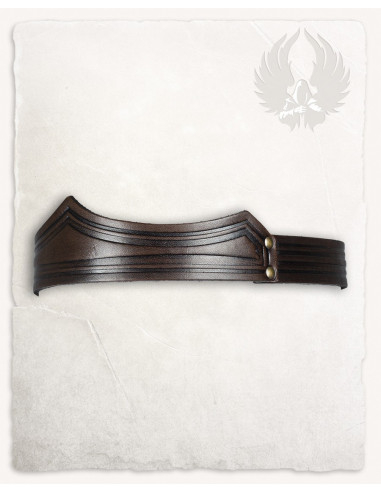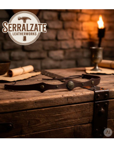 Il suo finissaggio in pelle marrone, resistente e versatile, si adatta comodamente, permettendoti di indossarla in diverse occasioni, dagli eventi culturali agli incontri speciali. L'artigianato spagnolo garantisce un prodotto unico, che combina tradizione, durabilità e uno stile che evoca lo spirito dei popoli vichinghi e celtici.