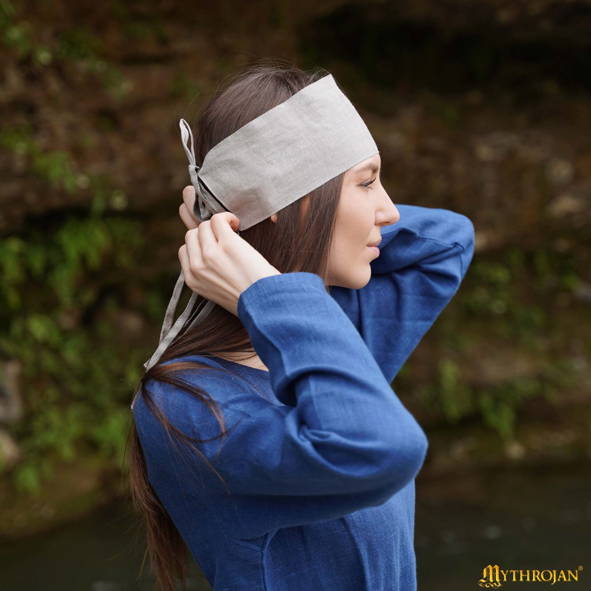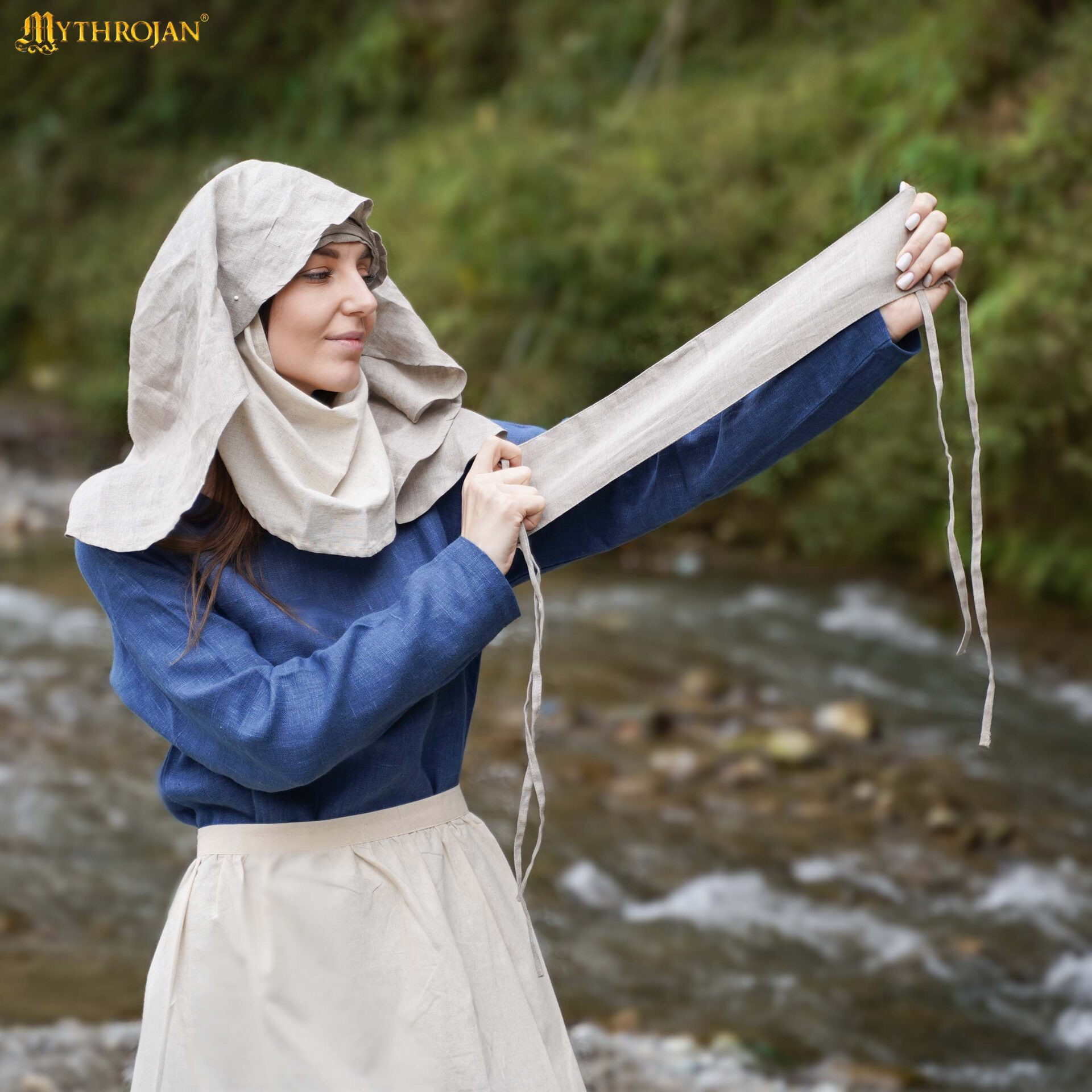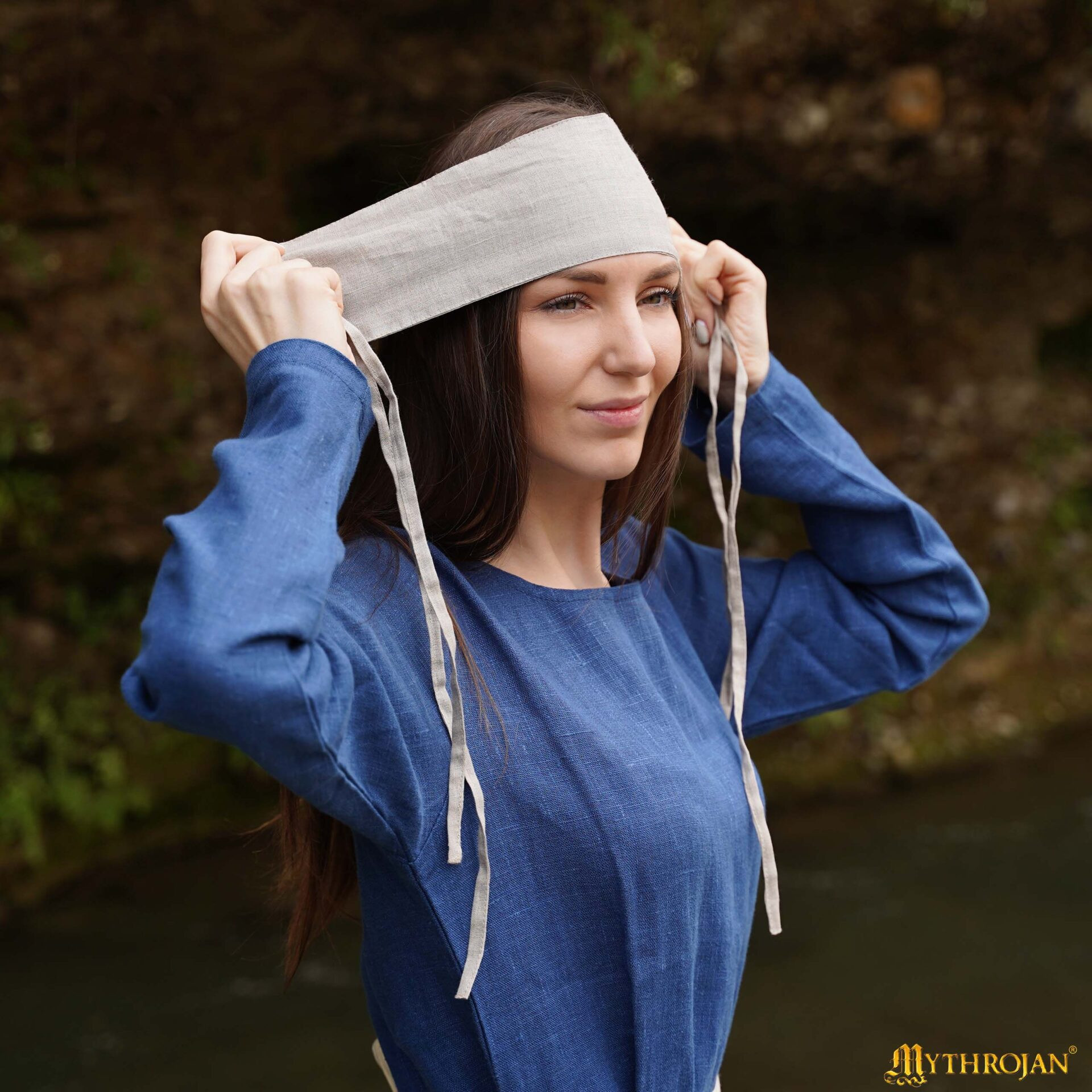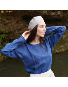 La Bandana medievale Secoli XII-XV in lino, colore naturale, conosciuta anche come fillette 'Dame Éléonore', recupera la semplicità e la funzionalità dei copricapi femminili del Basso Medioevo, offrendo un'aria autentica senza rinunciare alla praticità contemporanea.