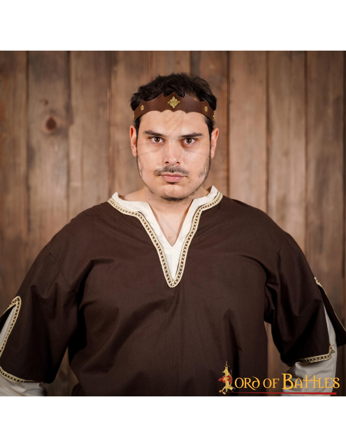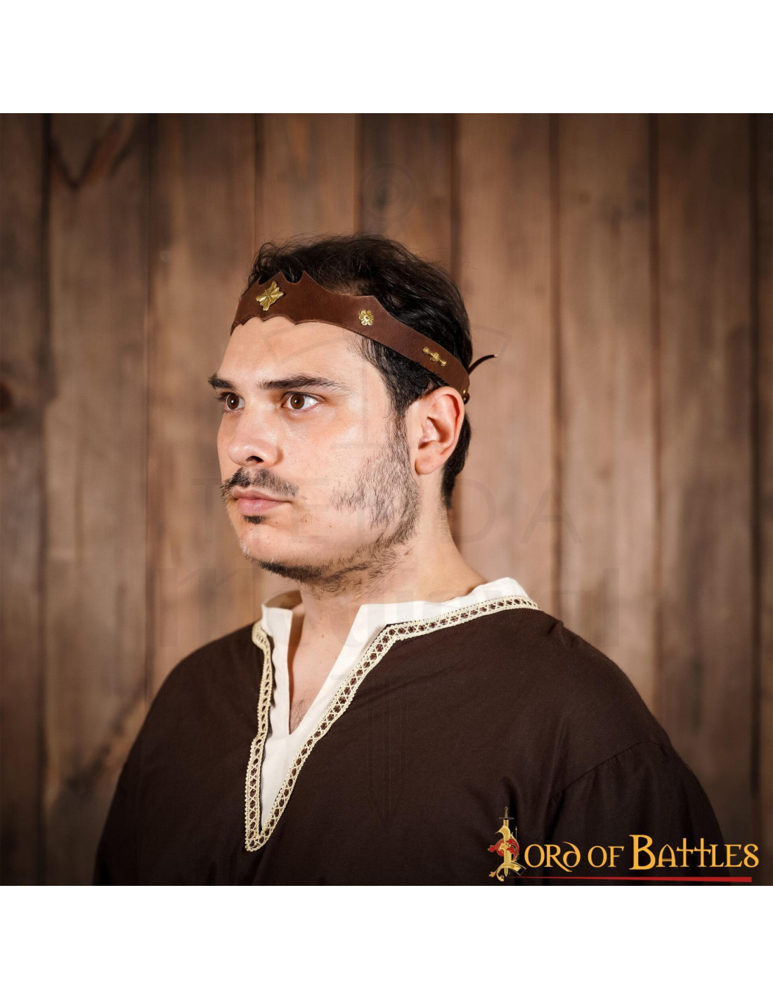 Ideale per chi desidera acquistare una Diadema in cuoio e ottone per avventura fantastica e distinguersi in ricreazioni, festival o sessioni creative. Il suo aspetto robusto e al tempo stesso elegante facilita la combinazione con mantelli, corazze o look signorili, aiutandoti a raccontare una storia visiva potente fin dal primo istante.