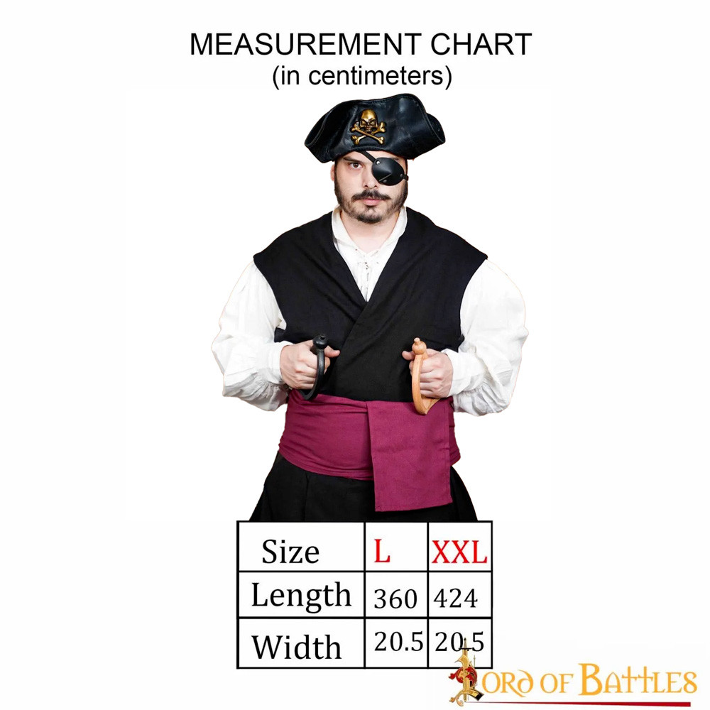 Questa cintura è ideale per i costumi da pirata al tuo prossimo cosplay o LARP, fornendo un tocco autentico al tuo outfit. Puoi scegliere tra due colori eleganti: nero e bordeaux, che ti permettono di abbinare la tua cintura a qualsiasi outfit da pirata e distinguerti in ogni evento.