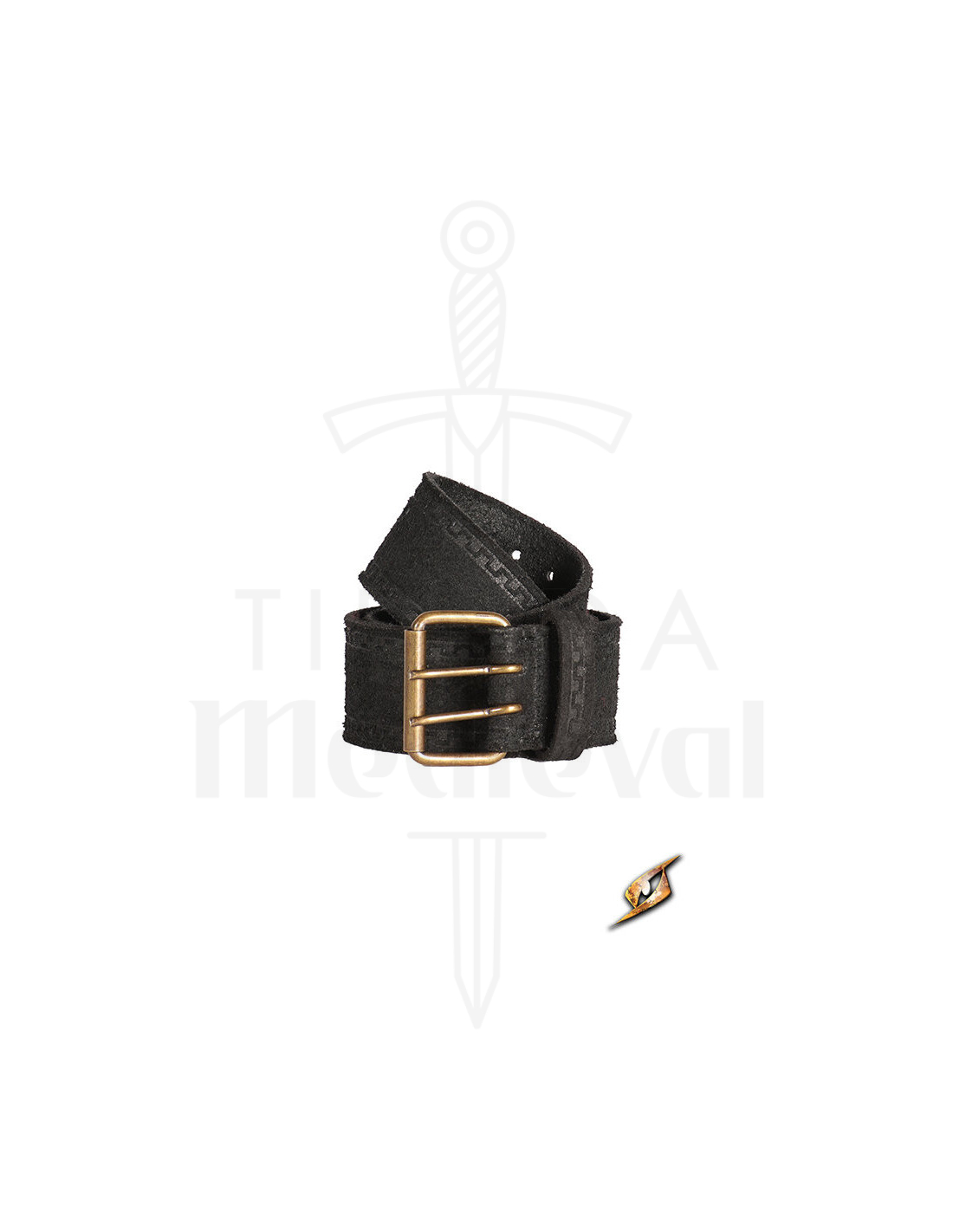 Realizzata in autentica pelle scamosciata, questa cintura offre la resistenza di una pelle robusta con la flessibilità necessaria per un uso confortevole. La sua superficie opaca e testurizzata conferisce un'estetica discreta e naturale, ideale per chi apprezza dettagli autentici che invecchiano con la storia, come marinai, esploratori o avventurieri in generale. La larghezza del design, accompagnata da una doppia fibbia regolabile, garantisce una vestibilità salda e sicura, anche durante movimenti intensi o carichi pesanti, sia con scudi, borse o armi appese.
