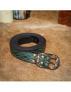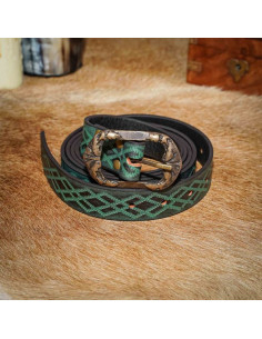 Non perdere l'occasione di diventare un vero guerriero medievale con questa cintura rinascimentale in pelle goffrata verde. Fai la differenza e distinguiti dalla massa con un accessorio creato con dedizione e passione per i dettagli.