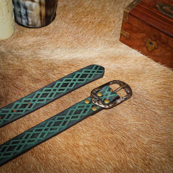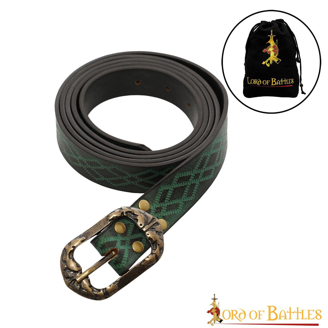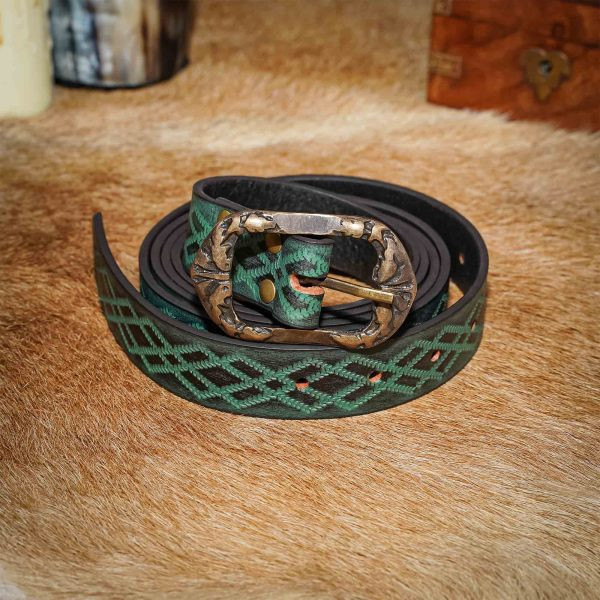 Approfitta di questa offerta e aggiungi oggi questa cintura rinascimentale in pelle goffrata verde alla tua collezione di accessori medievali!