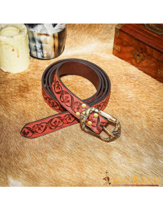 Richiesta su Cintura medievale in pelle marrone rossastro con disegno floreale