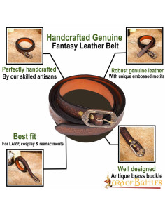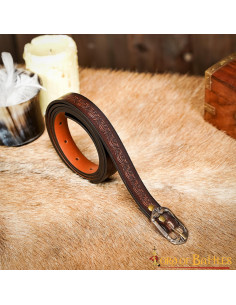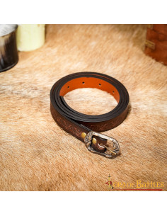 Cintura medievale in pelle marrone rossastra con design a rombo