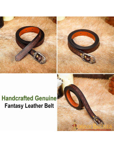 Cintura medievale in pelle con fibbia circolare in acciaio, marrone