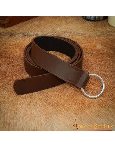 Cintura medievale in pelle con fibbia circolare in acciaio, marrone