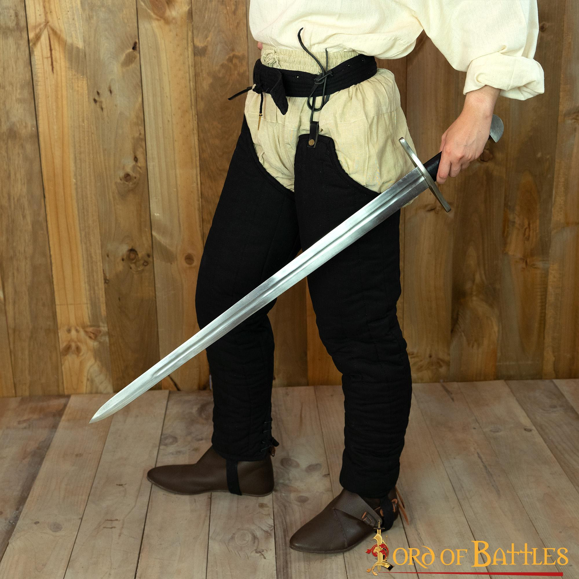 Equipaggiati con stile e funzionalità con la nostra cintura medievale imbottita con lacci in nero! Questa cintura per imbracatura è perfetta per contenere i tuoi gambali separati in stile 13° secolo, nonché per trasportare i tuoi gambali di cotta di maglia o l'armatura a piastre.