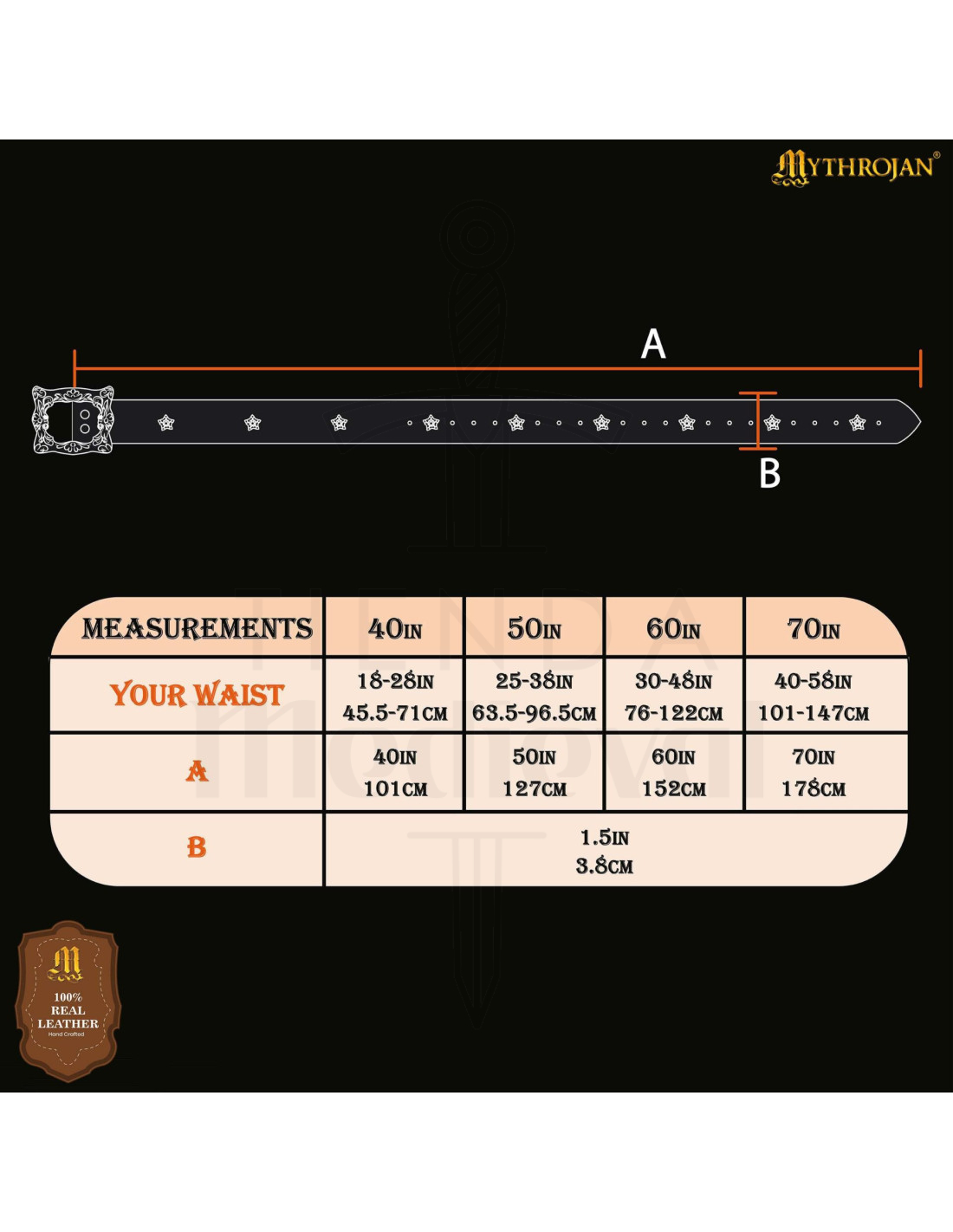 Indossa qualcosa di più di un accessorio, scegli un pezzo che parla da solo: cuoio scuro con presenza, una fibbia in ottone invecchiato e borchie che ricordano storie antiche. Indossandolo, senti come la cintura si adatta con naturalezza, offrendo una vestibilità sicura e una sensazione di comfort senza complicazioni, ideale per lunghe giornate in fiere, rievocazioni o eventi tematici.