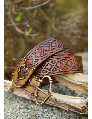 Cintura medievale rinascimentale in cuoio marrone con fibbia in ottone