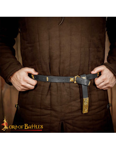 Cintura medieval in pelle nera con decorazioni in ottone, stile gotico