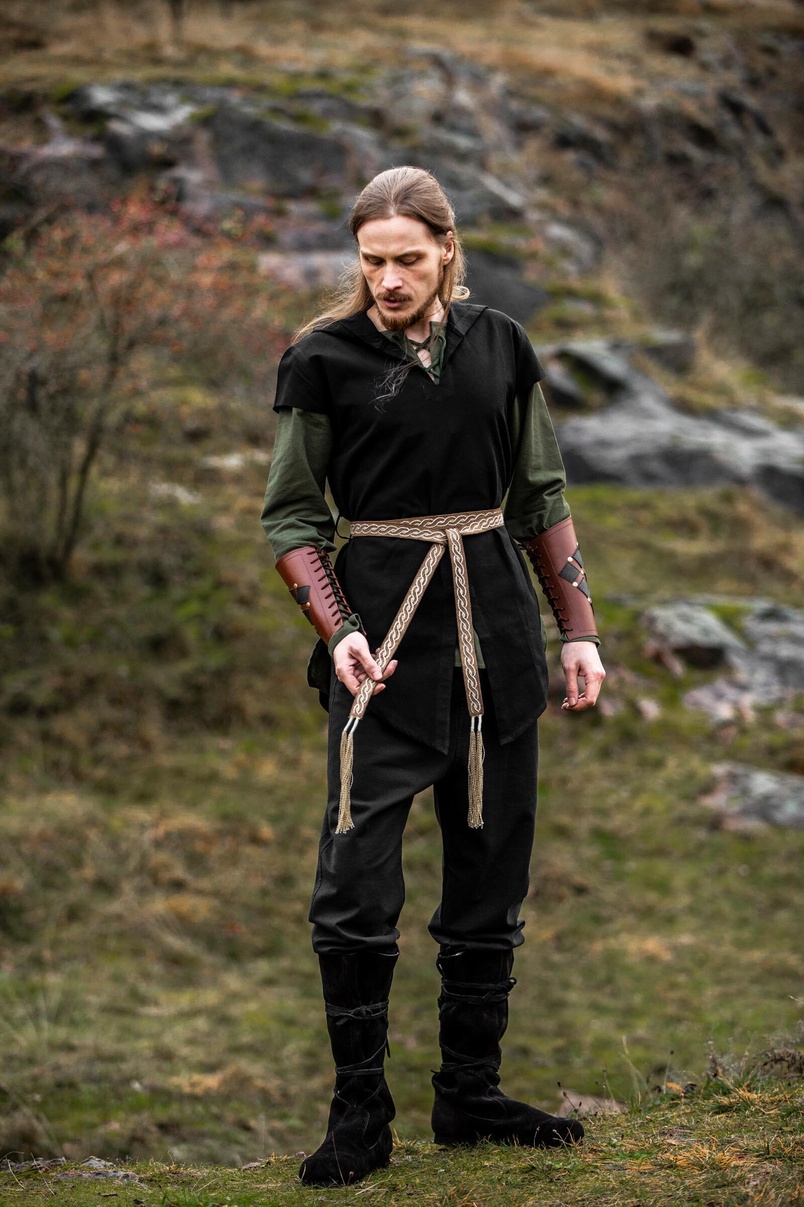 Cintura medieval larga in cuoio modello Jaret, colore marrone