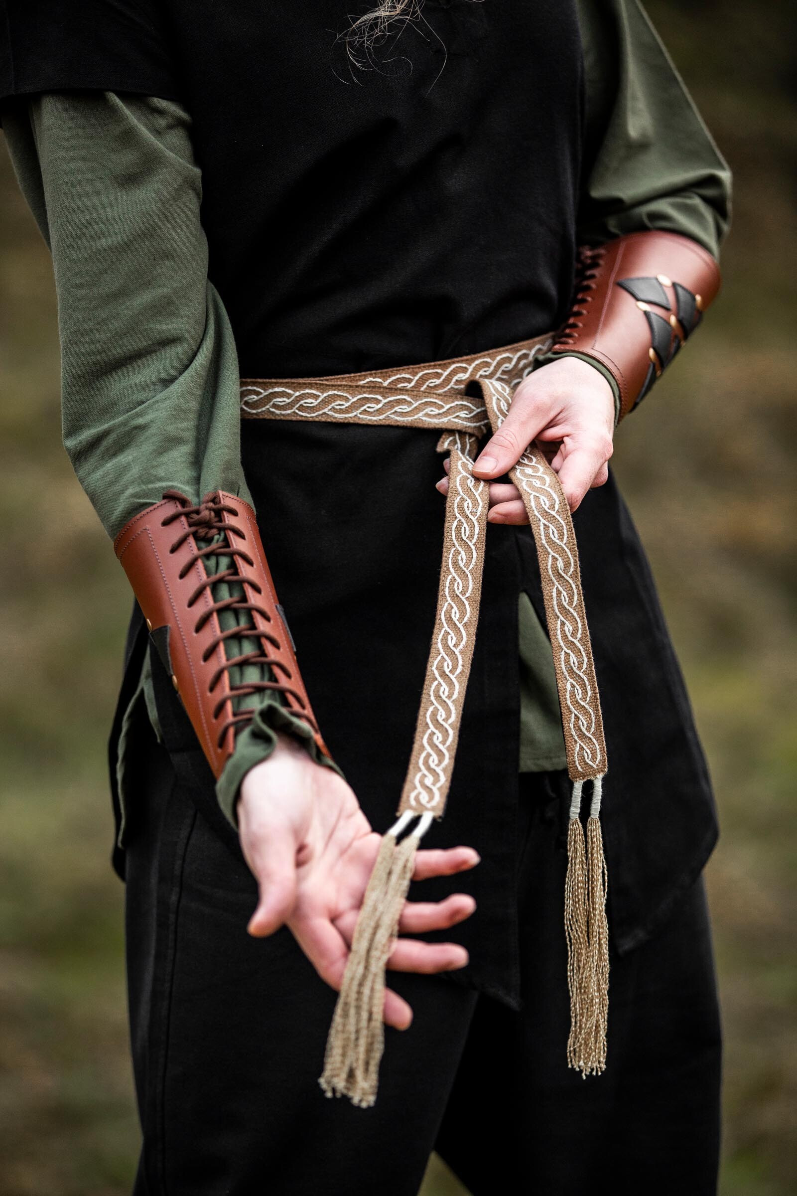 Cintura medieval doppia in cuoio modello Arnulf, colore marrone