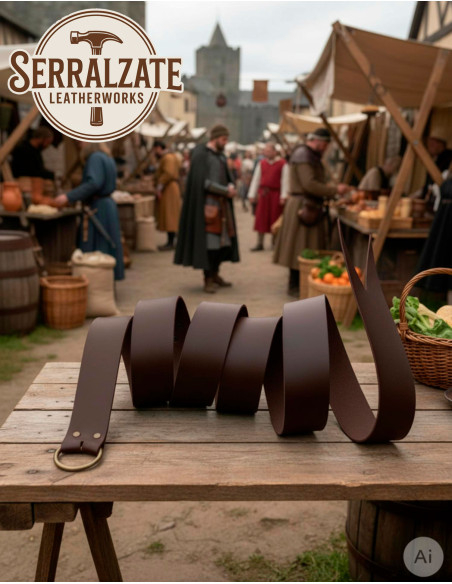 Cintura nera da Cavaliere Medievale in Pelle, Stile Montanaro