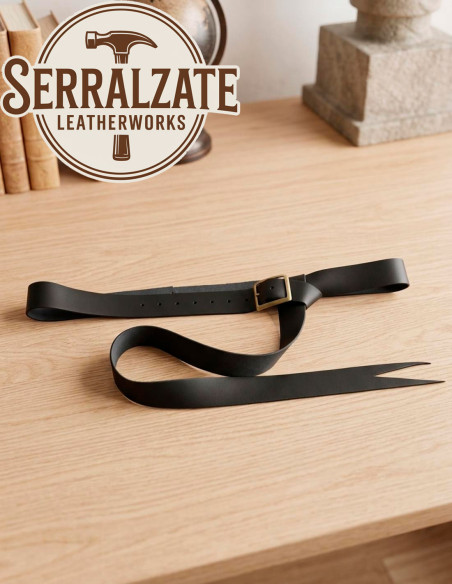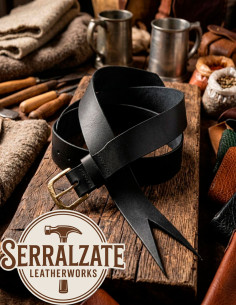 Cintura medieval rinascimentale in pelle nera con fibbia in ottone
