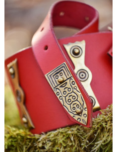 La cintura Late Roman Centurion è l'accessorio perfetto per chi vuole rivivere il tempo dell'Impero Romano e sentirsi degli autentici centurioni. Questa cintura è realizzata in pelle bovina di alta qualità, con uno spessore di 3 mm che ne garantisce durata e resistenza. Inoltre, ha dieci ornamenti in ottone che gli conferiscono un tocco di eleganza e autenticità.