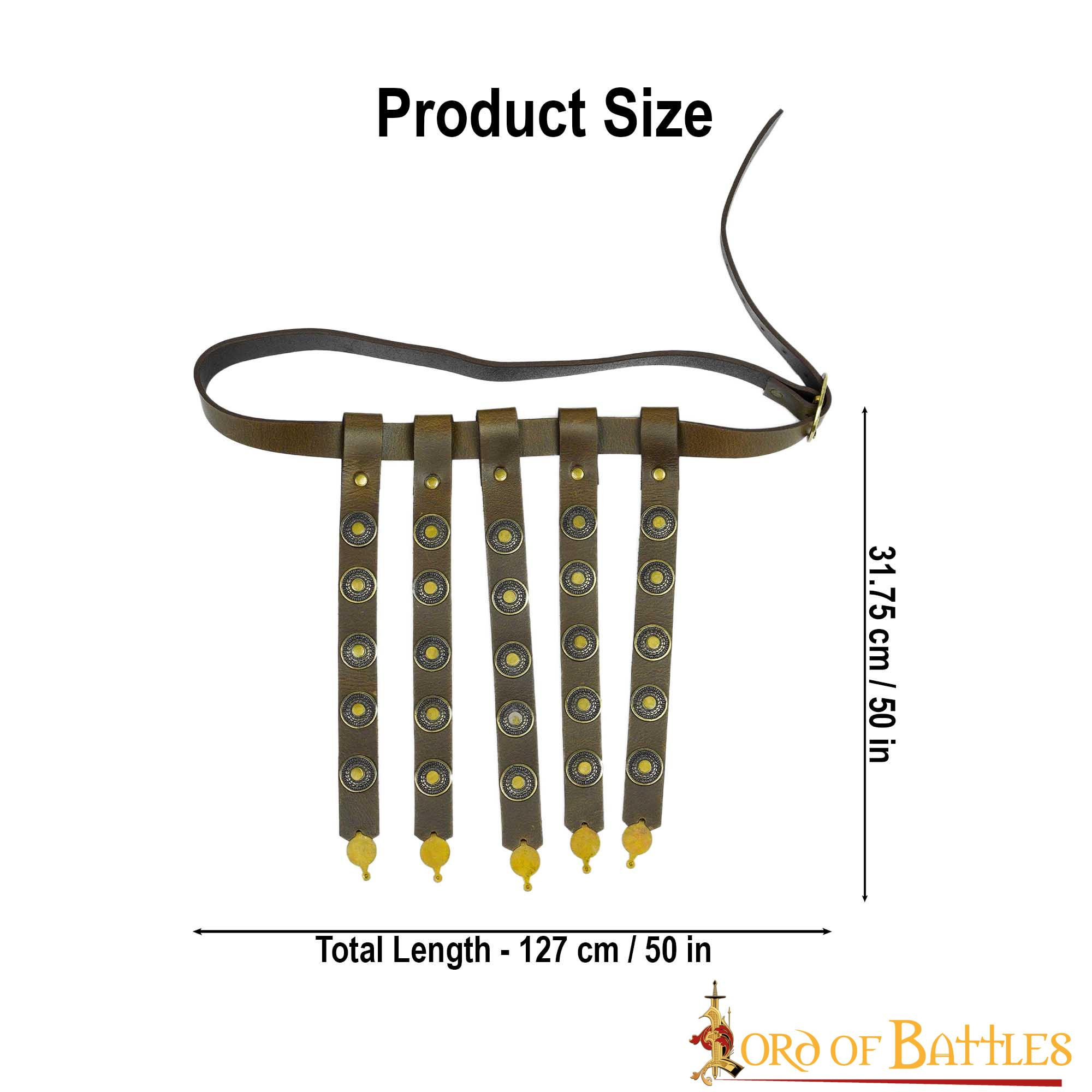 Con il marchio di qualità Lord of Battles, puoi essere sicuro di acquistare un prodotto durevole e autentico. Questa cintura da legionario romano non è solo un pezzo impressionante di storia, ma anche un'opzione ideale per sfoggiare uno stile unico e sofisticato.
