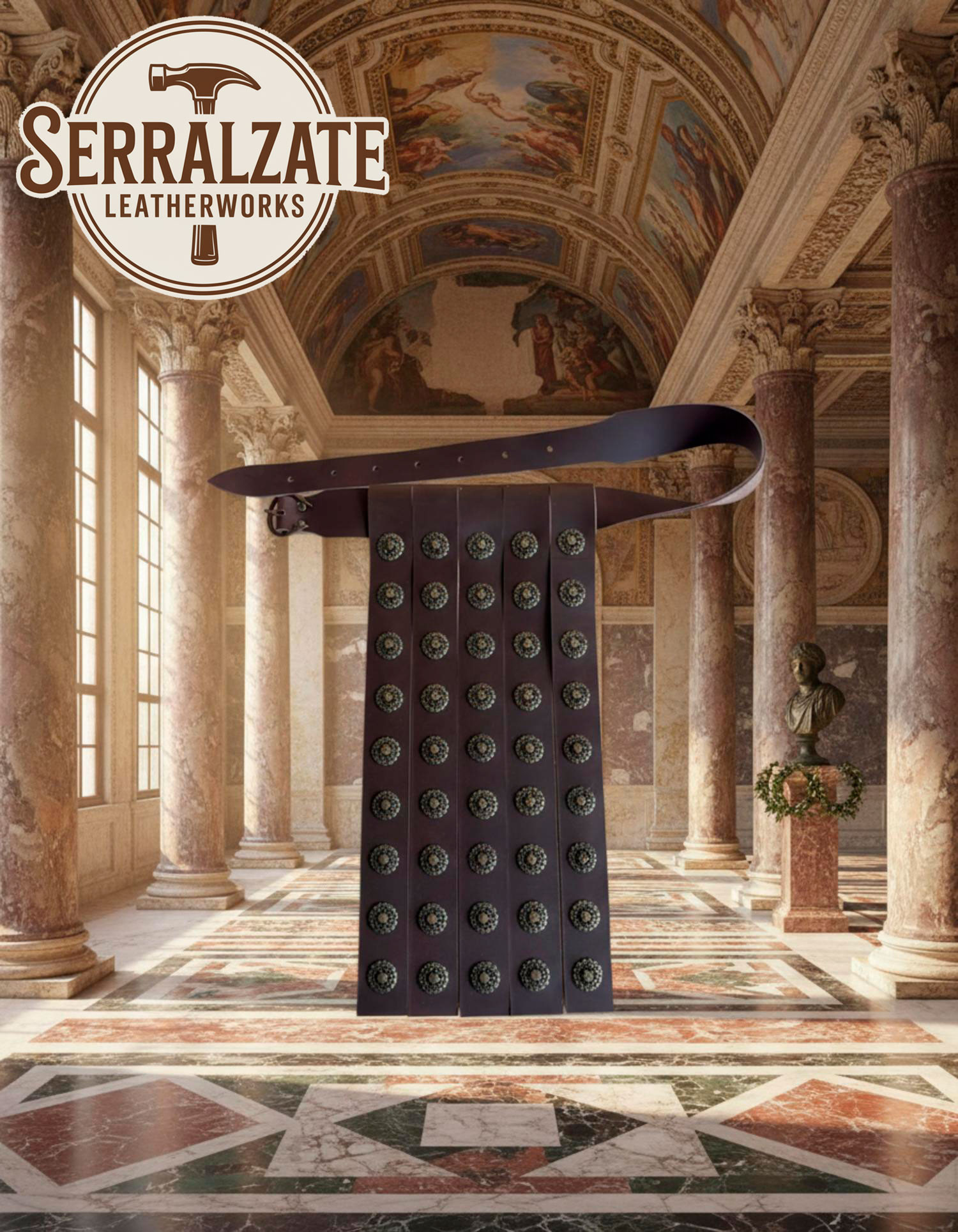 Richiesta su Cinturone romano militare in pelle marrone 4 pteryges