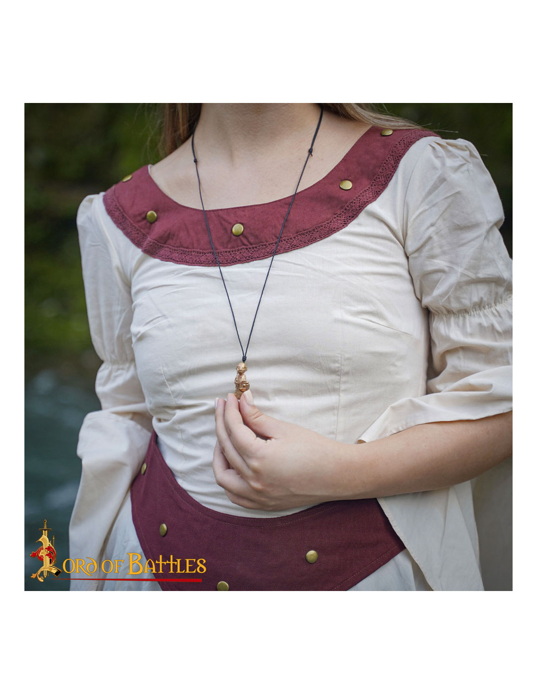 È sospeso a una corda nera, il che rafforza il suo stile rustico e medievale. Questo materiale offre comfort e flessibilità affinché tu possa indossarlo sia in eventi tematici che nella vita quotidiana. Inoltre, il suo design compatto assicura che non sia eccessivo e sia facile da abbinare a diversi stili.