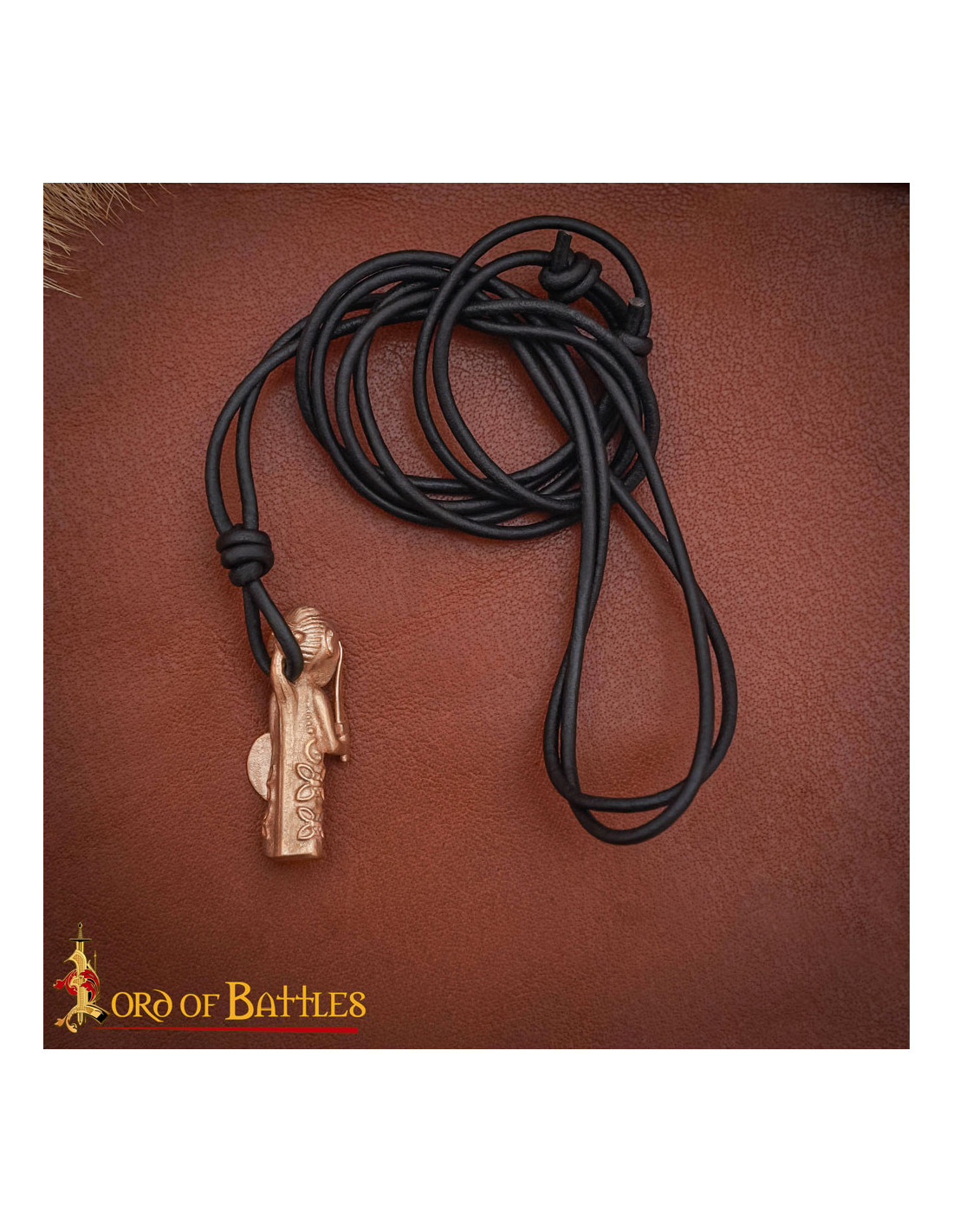 Esplora in dettaglio l'essenza della cultura vichinga con questo incantevole ciondolo del marchio 'Lord of Battles'. Realizzato interamente in bronzo, combina resistenza e un design autentico che cattura la forza e il misticismo delle Valchirie, figure chiave della mitologia nordica conosciute per essere guerriere che guidavano gli eroi caduti al Valhalla.