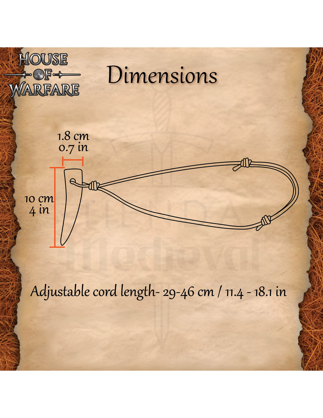 Il design allungato e appuntito, forato nella parte superiore e montato su un cordino nero regolabile, facilita un aggiustamento personalizzato, permettendo di indossarlo su camicie, tuniche o direttamente sulla pelle. Questa versatilità significa che non devi preoccuparti delle combinazioni, il ciondolo si adatta al tuo stile e movimento durante tutta la giornata.