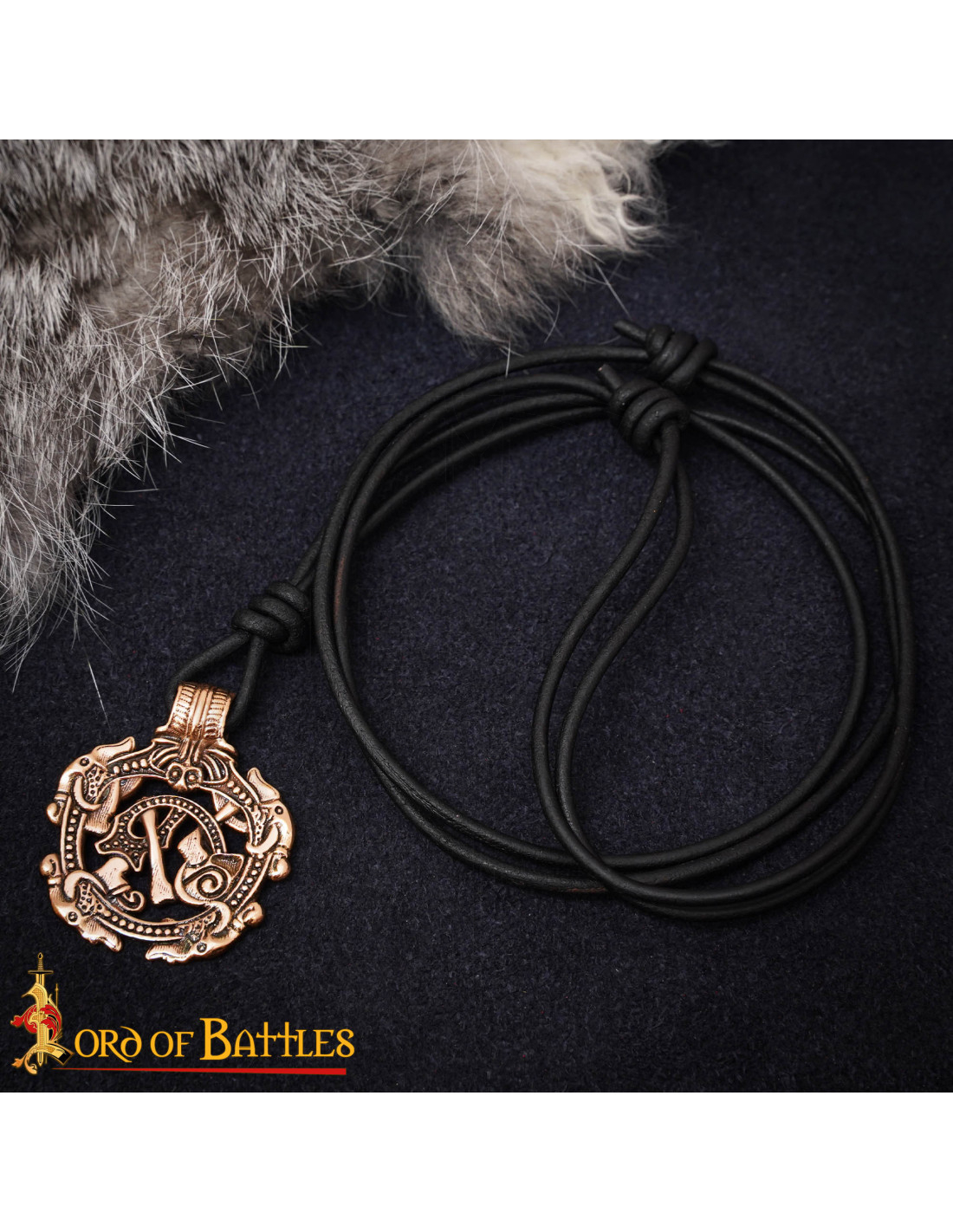 Il design circolare con la serpente intrecciata non è solo decorativo, riflette l'idea di cicli eterni e protezione, simboli che si collegano con le tradizioni vichinghe e con la figura mitica di Jörmungandr, la potente serpente che avvolge il mondo nella mitologia nordica. Un pezzo così parla di identità e radici, senza parole.