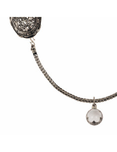 Il ciondolo è una sfera di autentico cristallo di rocca, levigata per catturare la luce e trasformarla in un punto di attenzione discreto ma magnetico. Esteticamente concepita sulla base di reperti trovati a Gotland, offre una sensazione di pezzo archeologico, artigianale e pronto a accompagnarti in ogni occasione.