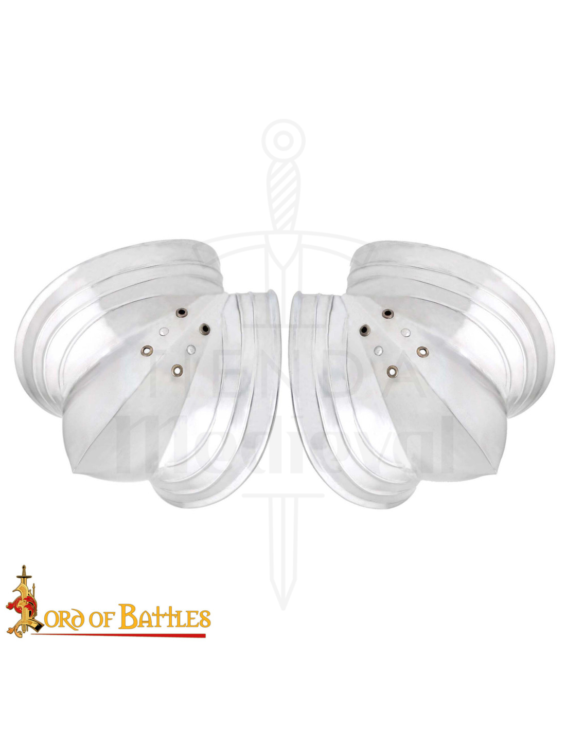 Queste gomito sono state concepite per chi cerca autenticità senza rinunciare alla funzionalità: la loro costruzione metallica offre una sensazione solida al tatto, proteggendo l'avambraccio nei combattimenti e nelle ricreazioni storiche, mentre allo stesso tempo esalta la tua armatura con una lucentezza lucida che attira gli sguardi. Le linee in rilievo che seguono la curva naturale del gambeson non solo conferiscono carattere, ma deviano i colpi dalle articolazioni, aumentando la sicurezza in ogni incontro.