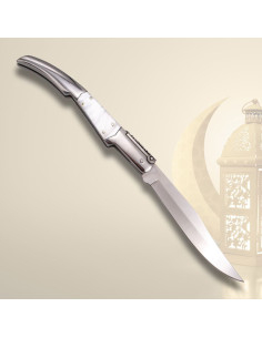 Coltello da tasca a cricchetto arabo, manico in corno di toro (21,70 cm.)