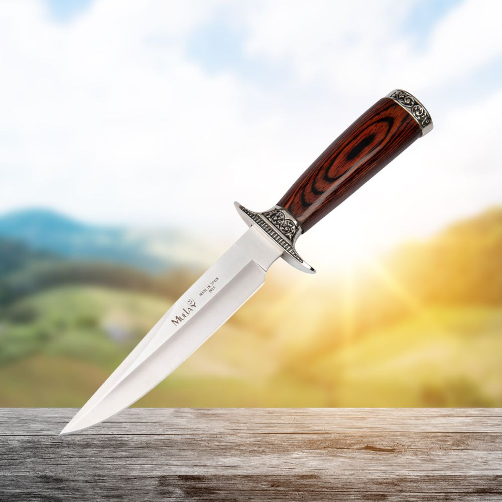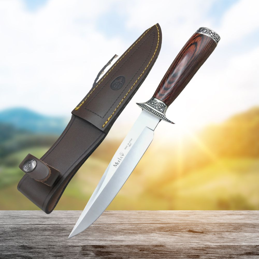 Coltello da caccia con lama per spellare e fodero