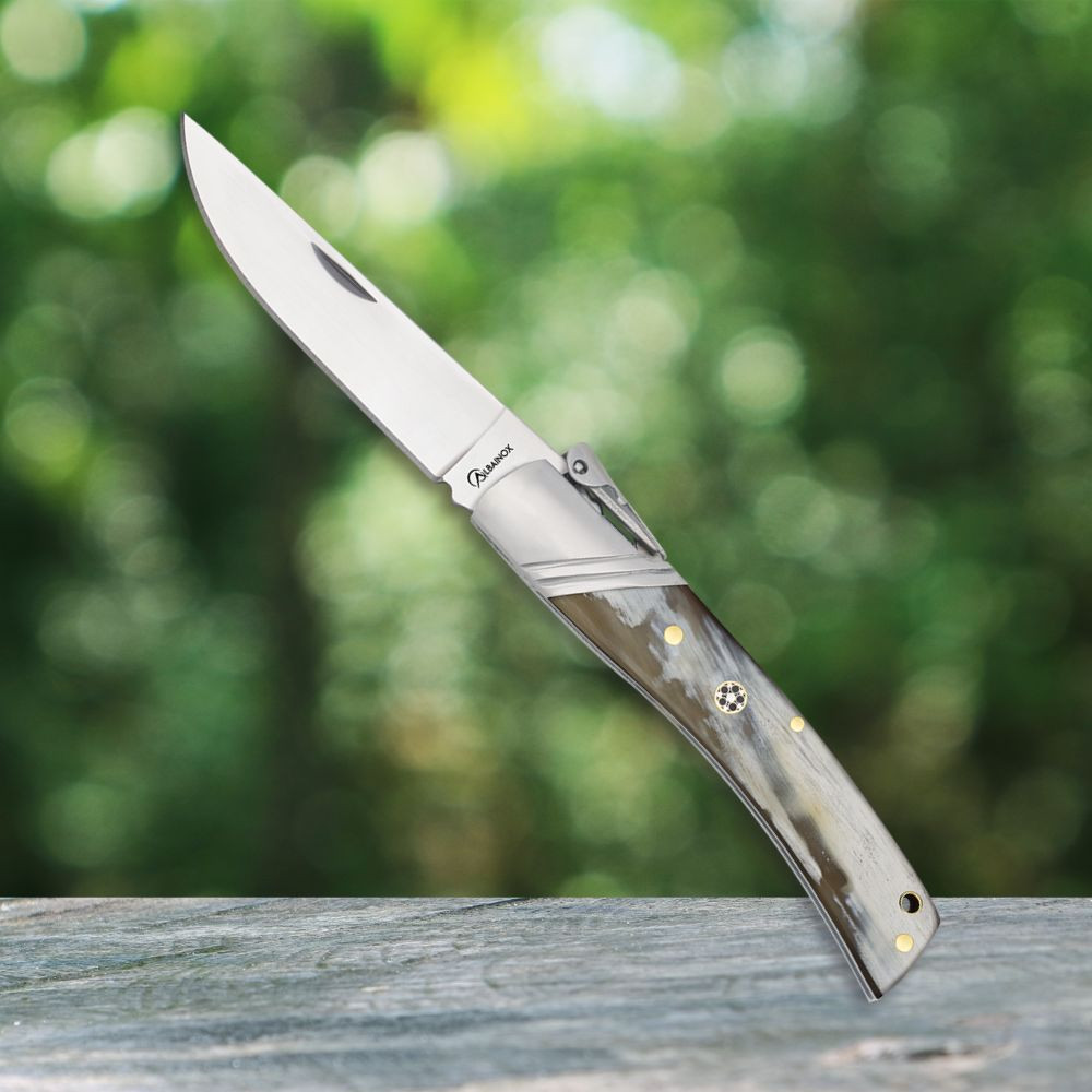 Scopri l'elegante Coltello Palanquilla in corno, un prodotto esclusivo del prestigioso marchio Albainox. Questo coltello combina tradizione, design e materiali di alta qualità, risultando perfetto sia per collezionisti che per chi cerca uno strumento funzionale e stiloso.