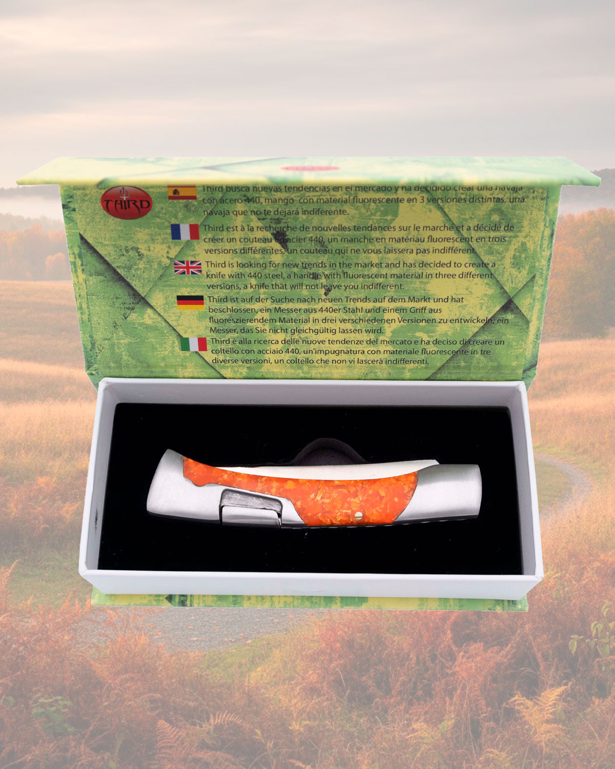 Coltello da campo marca Albainox manico in acciaio blu (11,80 cm.)
