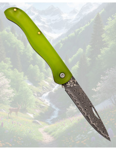 Il manico di colore verde fluorescente non passa inosservato, la sua forma ergonomica si adatta alla mano e migliora il controllo in manovre delicate; inoltre, il suo tono vivace facilita il ritrovamento del coltello all'istante, sia in un cassetto che all'aperto. La combinazione di materiali assicura una presa sicura senza rinunciare alla leggerezza, per un trasporto confortevole.