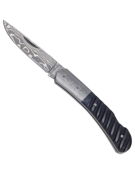 Coltello tascabile in acciaio Damascus e corno di bufalo