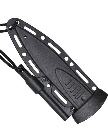 Il design della lama doppia e la punta a pugnale, con una finitura nera che riduce i riflessi, offre tagli precisi e una risposta immediata quando è più importante. Appoggiandola sulla mano si nota la solidità del full tang, una sensazione di sicurezza che trasmette fiducia, senza risultare ingombrante da portare con la cintura o l stivale grazie alle sue proporzioni equilibrate. Il manico avvolto in gomma TPE fornisce una presa salda ed ergonomica, con rilievi che evitano scivolamenti anche in condizioni di umidità, e la piccola guardia protegge le dita in ogni manovra.