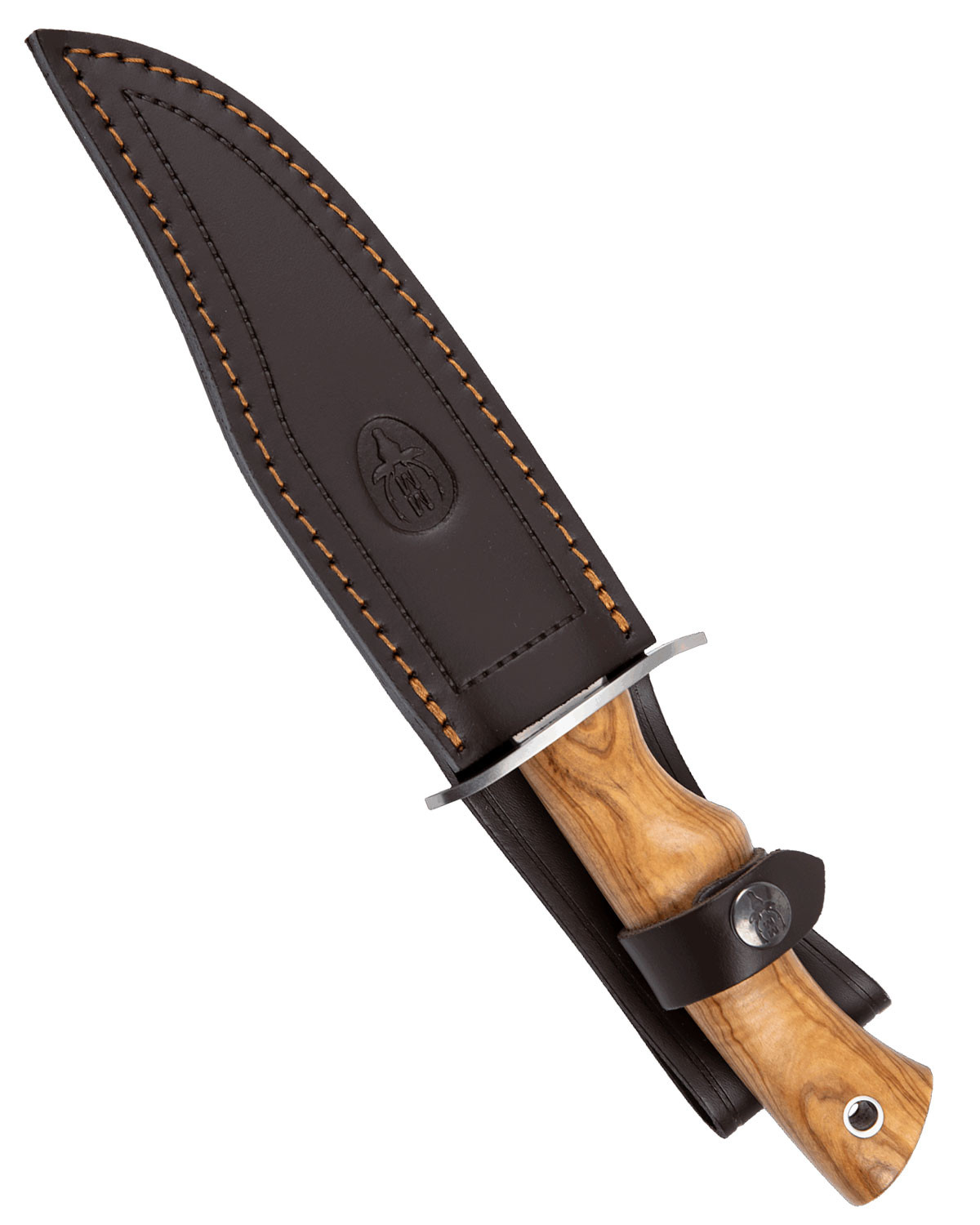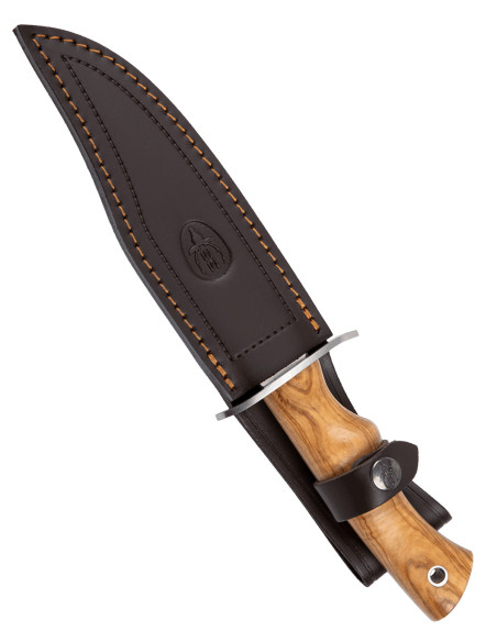 Coltello da montagna con manico in olivo e guardia in acciaio inox