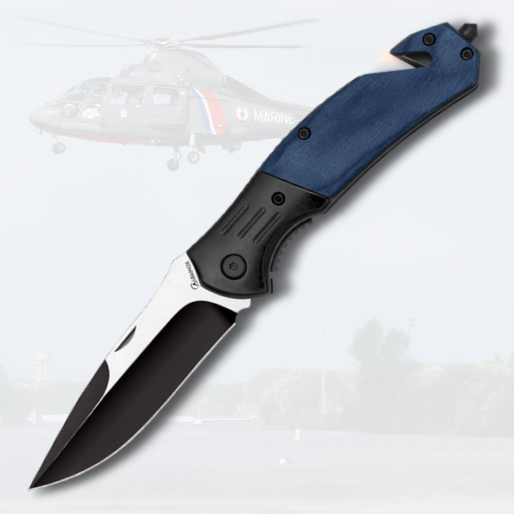 Scopri uno strumento pratico e versatile che non solo si distingue per il suo design attraente, ma anche per la sua funzionalità. Questo coltello da soccorso è ideale per chi cerca uno strumento affidabile e durevole per situazioni di emergenza o attività all'aperto. La sua lama, con finitura nera spazzolata, è realizzata in resistente acciaio 3CR13MOV, che garantisce durata ed efficienza nel taglio. Grazie al suo filo unico e al design dritto, potrai effettuare tagli precisi senza sforzo.
