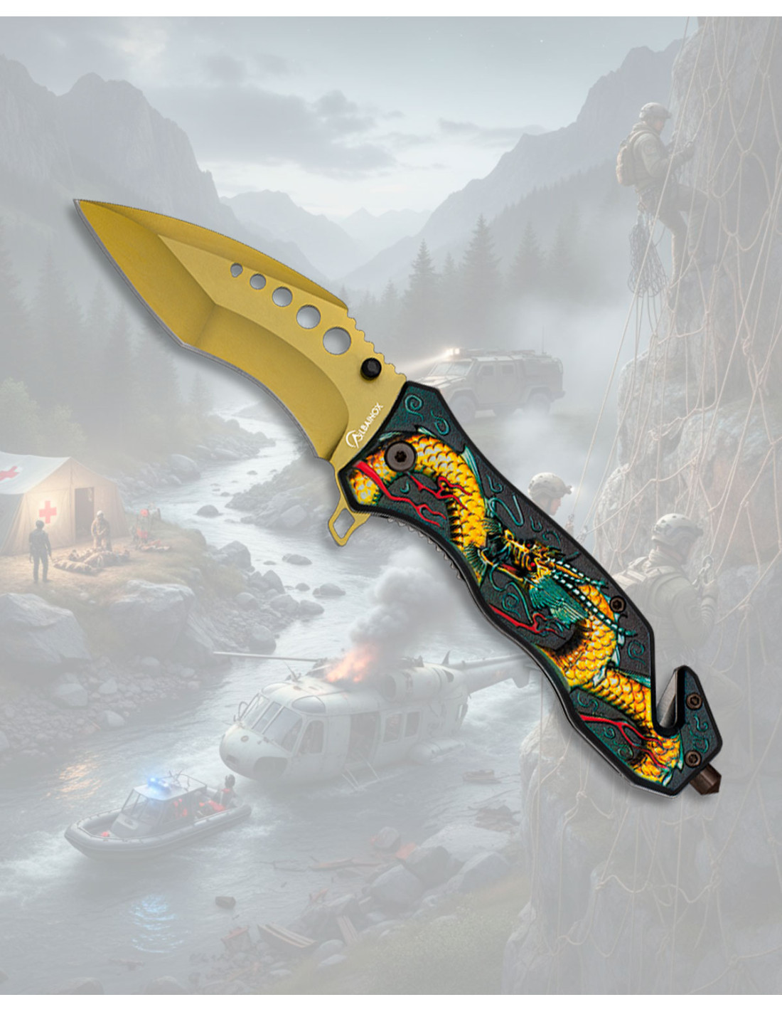 Se valorizzi l'essere preparato e desideri acquistare il Coltello tattico di salvataggio Albainox drago giallo, otterrai un pezzo che unisce design accattivante e soluzioni utili, pensato per quei momenti in cui la rapidità e l'affidabilità contano.