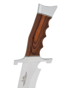 La lunghezza della lama è di 30 cm, il che la rende perfetta per tagliare materiali duri e resistenti. Il fodero in vera pelle con chiusura a strappo non solo mantiene il coltello sicuro e protetto, ma gli conferisce anche un aspetto classico ed elegante.