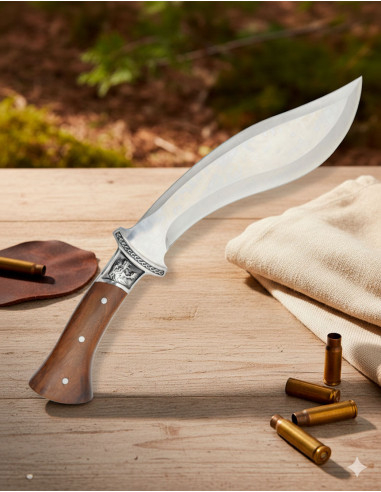 La forma kukri, con il suo profilo curvato e un solo filo, ha radici in tradizioni di taglio efficaci, storicamente associate a guerrieri e artigiani che necessitavano di uno strumento versatile. Questa eredità si nota nella sensazione di potenza controllata che offre.