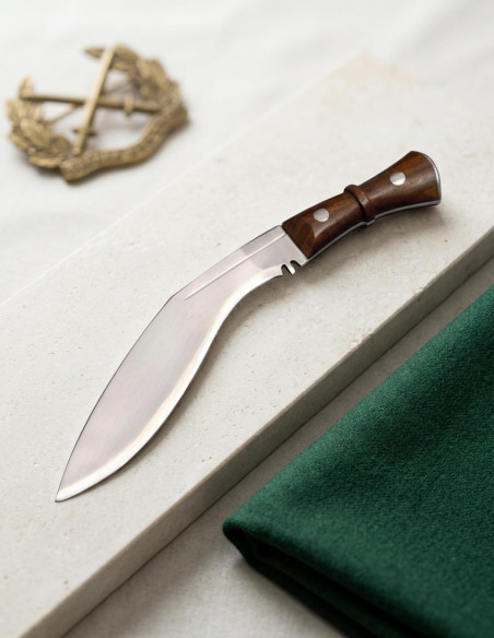 Vuoi un'arma che ti dia il controllo totale in ogni sfida e che rappresenti la forza di un patrimonio antico? Quello di cui hai bisogno è un compagno che imponga rispetto, duri nel tempo e ti accompagni nell'avventura. Uno strumento che non si limiti a tagliare, ma che affermi la tua padronanza su superfici e situazioni estreme. Il Coltello Kukri Reggimento Gurkha è quell'utensile che trasforma ogni utilizzo in una dichiarazione di potenza, resistenza e preparazione. Con una lama affilata in acciaio al carbonio e un manico in legno che respira storia, ti connette a un passato di onore e resilienza.